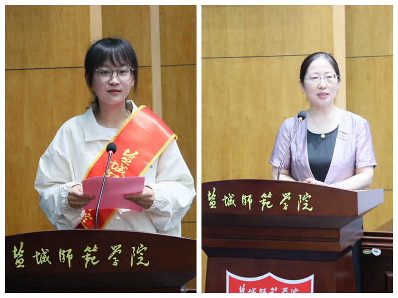 马克思主义学院胡婷同学、文学院刘秀珍老师分别作为支教学生、教师代表发言。她们表示,必将不负学校重托,牢记初心使命,在实践中锻炼,在奉献中成长,圆满完成本次支教任务。