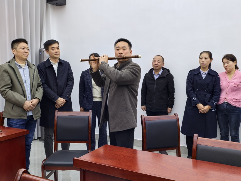 交流活动在盟员于基厚激情的二胡独奏《战马奔腾》中拉开序幕,激昂旋律点燃现场热情。竹笛博士宋克歆带来《扬鞭催马运粮忙》,仿佛把大家带入了丰收时节热闹非凡的运粮场景。盟员高金玉带领美术学院学生现场挥毫泼墨,一幅幅展现乡村美景的国画作品跃然纸上,将乡村的宁静与美好展现得淋漓尽致。新冈社区两位文艺爱好者还与盟员进行了二胡合奏,他们默契的配合赢得阵阵喝彩。